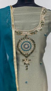 Shimmer Fabric Peacock Colour Elegant Boutique Piece Party wear suit