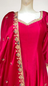 • Fabric Chinnon Attractive Hot Pink  Readymade Frock with  Palazzo