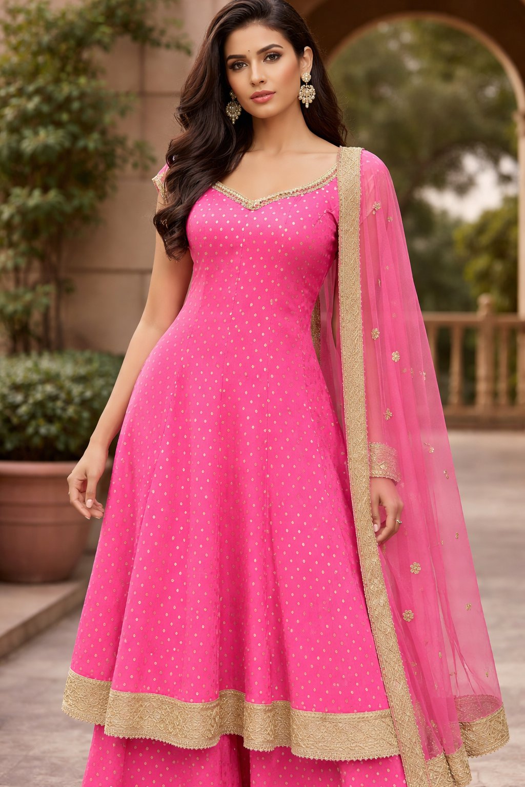 Anarkali With plazo, Pink Colour, Bnarasi fabric