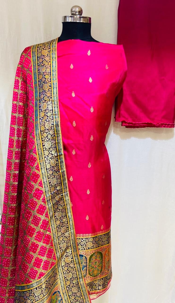 Banarasi Fabric Hot Pink Lovely Party Wear Suit