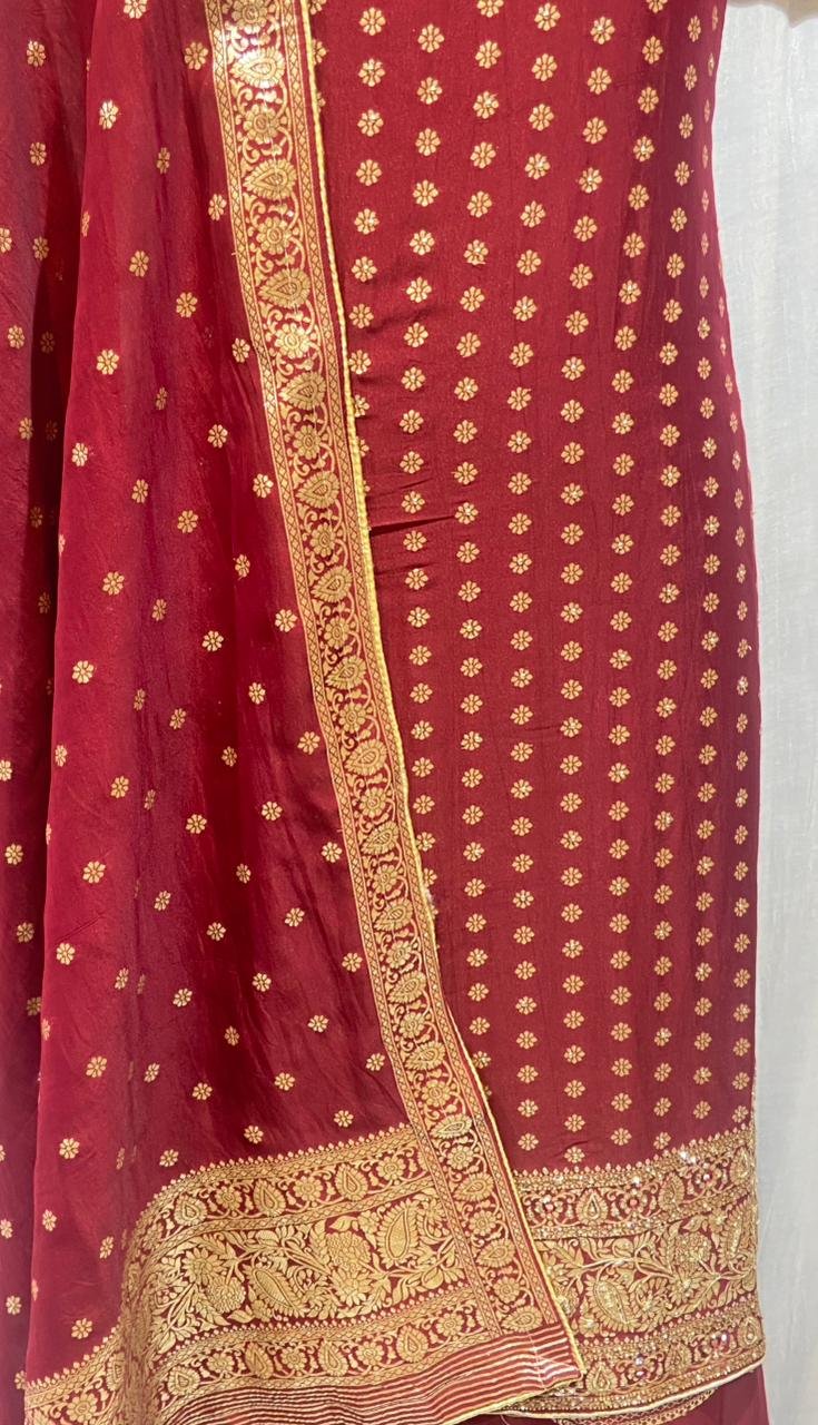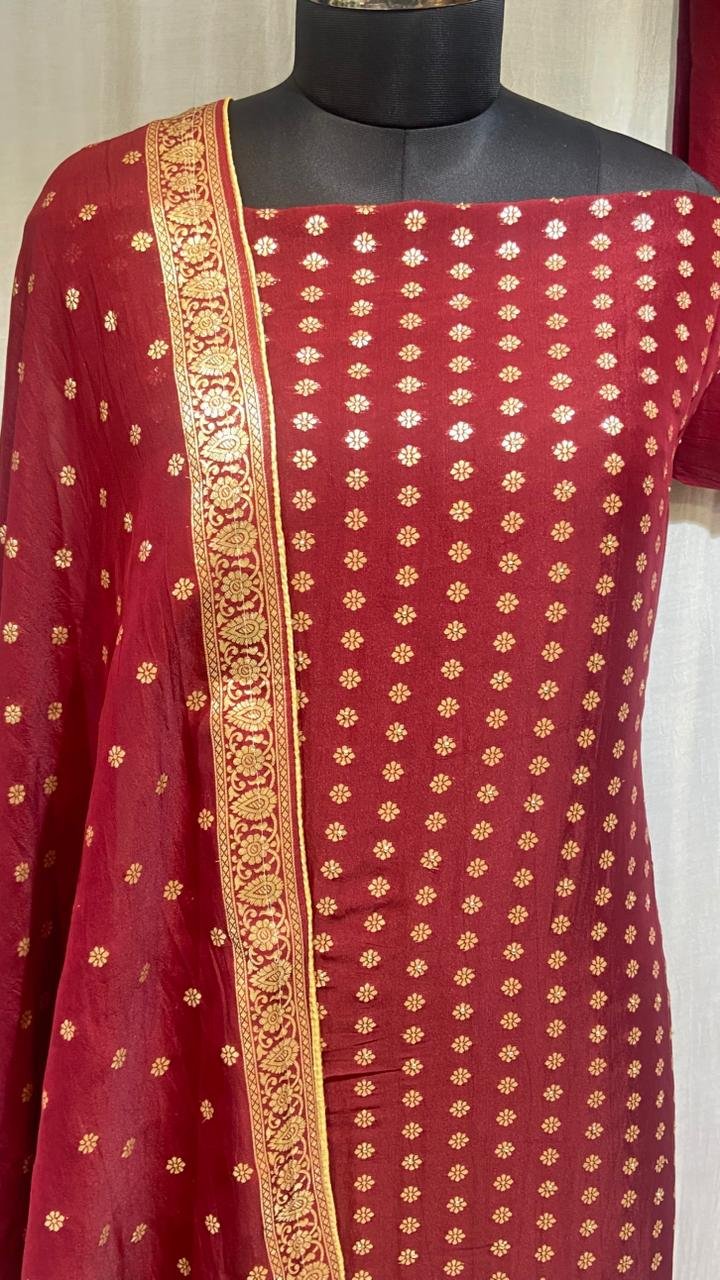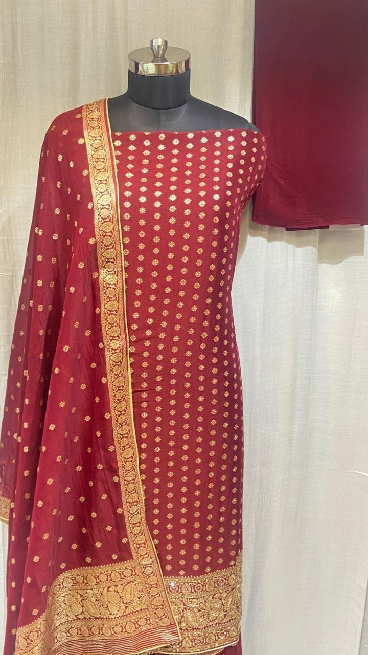 Banarasi Fabric Mehroon Colour Designer Party Wear Suit