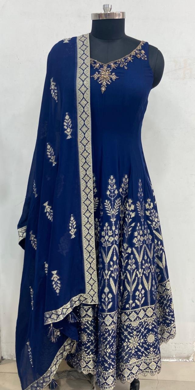 Banarasi Fabric Navy Blue Colour Readymade Party WearSuit