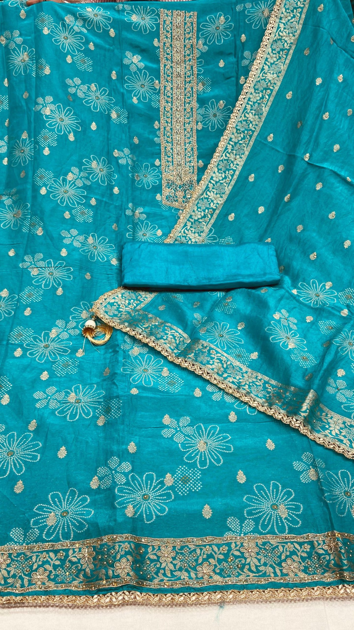 Banarasi Shimmer Firozi Colour Designer Party Wear Suit