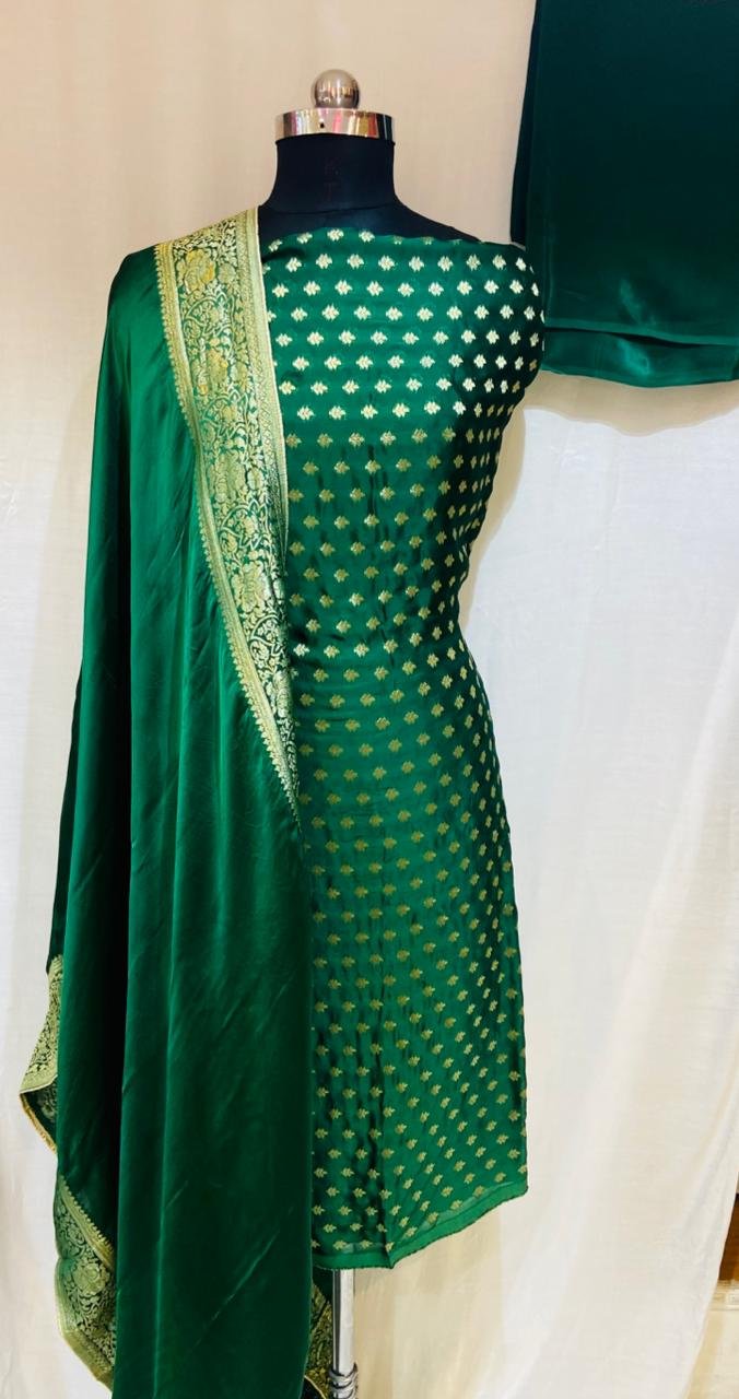 Banarasi Silk Bottle Green Lovely Party Wear Suit