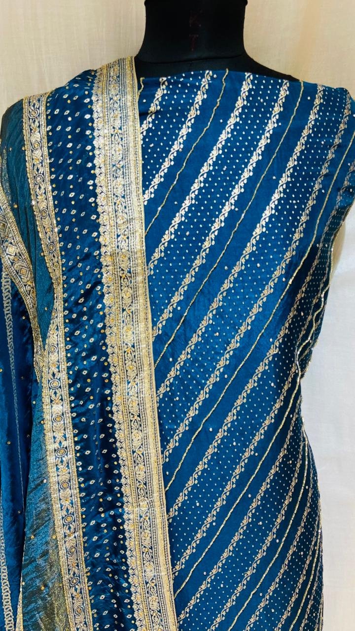 Banarasi Silk Fabric Boutique Piece Peacock Colour Attractive Party Wear Suit
