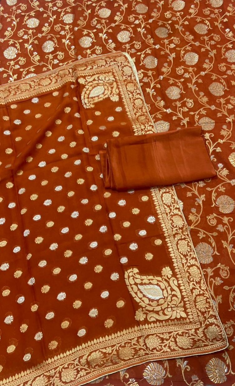 Banarasi Silk Rust Colour Designer Party Wear Suit
