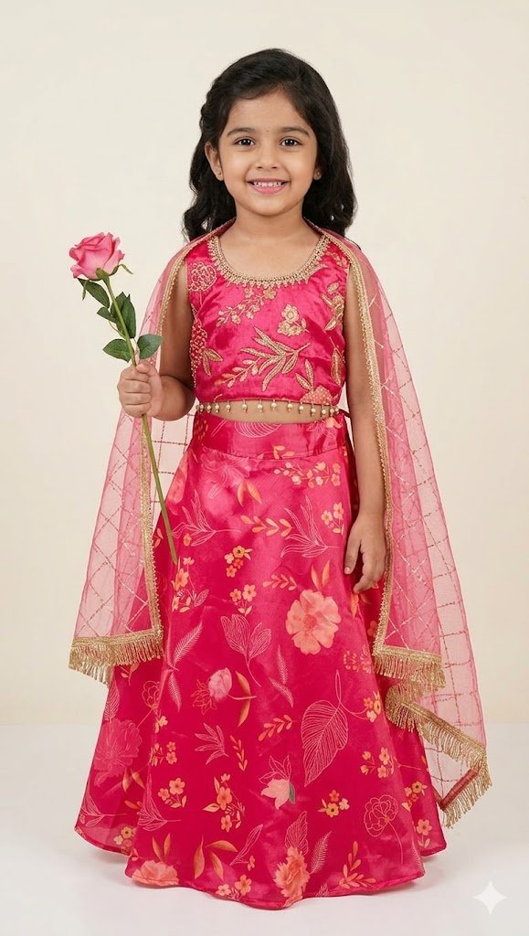 Chinnon Fabric Radish colour Attractive Readymade Lengha Choli