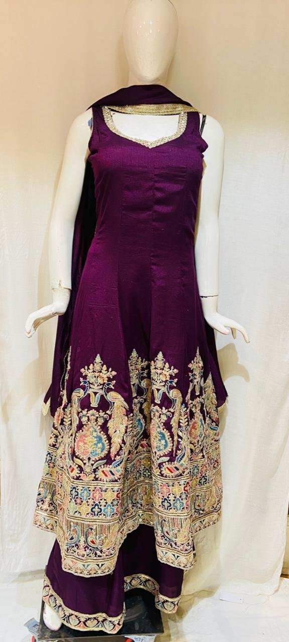 Chinnon Fabric Wine Colour Readymade Frock With Plazzo Suit