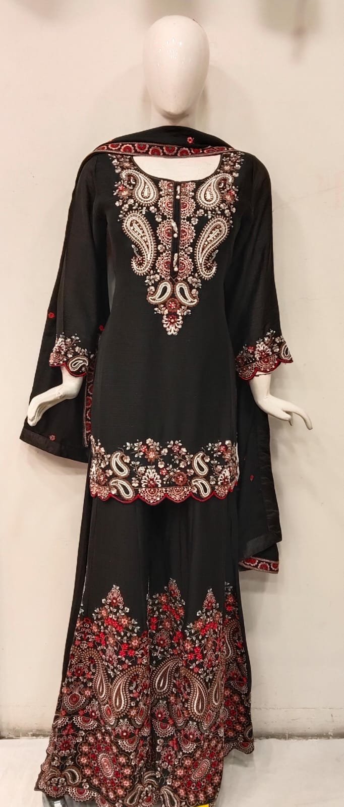 Chinon Fabric Black Colour Readymade Plazzo Suit