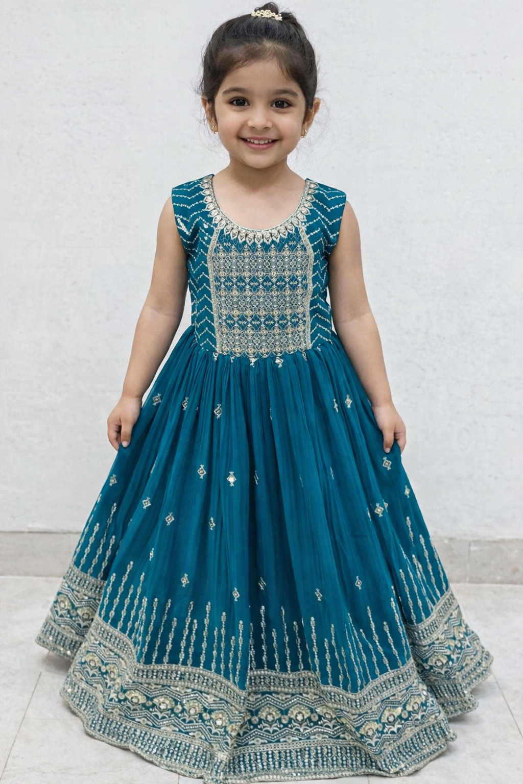 Chinon Fabric C green Colour Sippy Work Readymade Long Frock