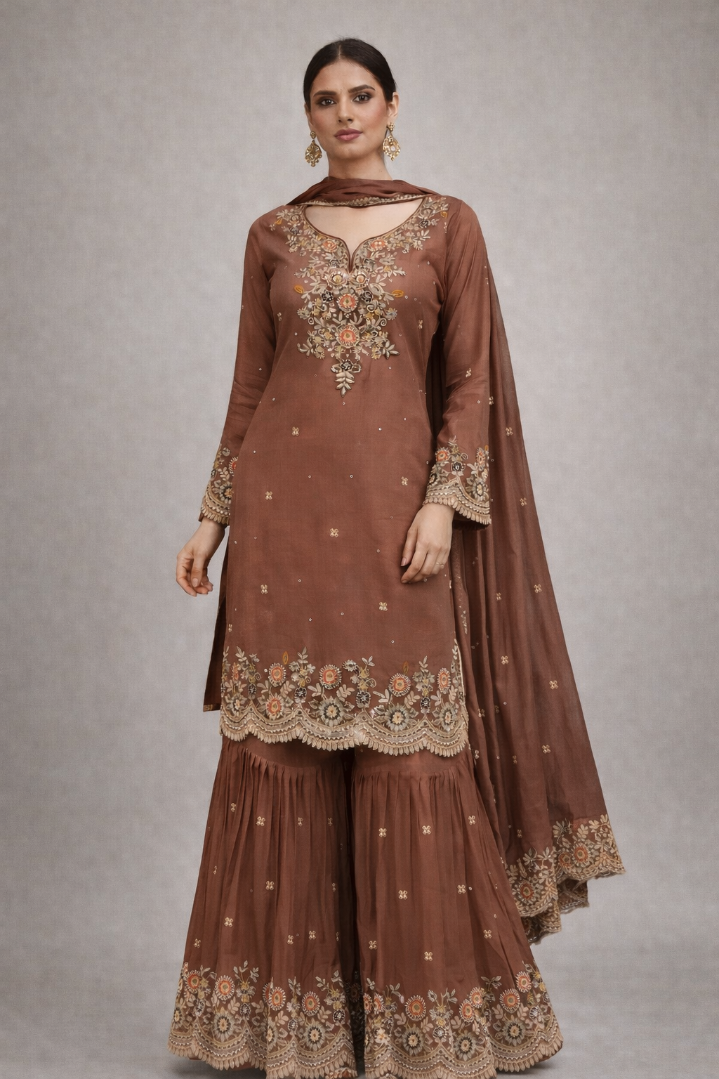 Chinon Fabric Copper Colour Readymade Sharara Suit