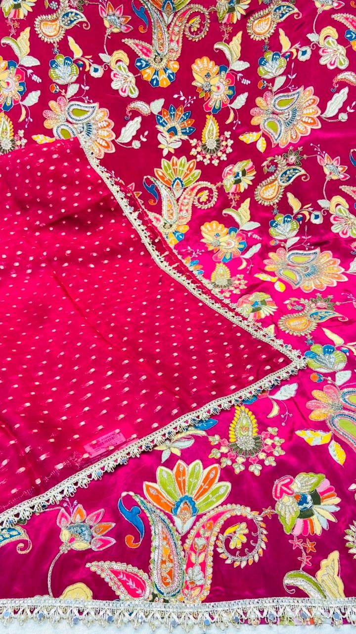 Chinon Fabric Hot Pink Colour Degital Print Suit