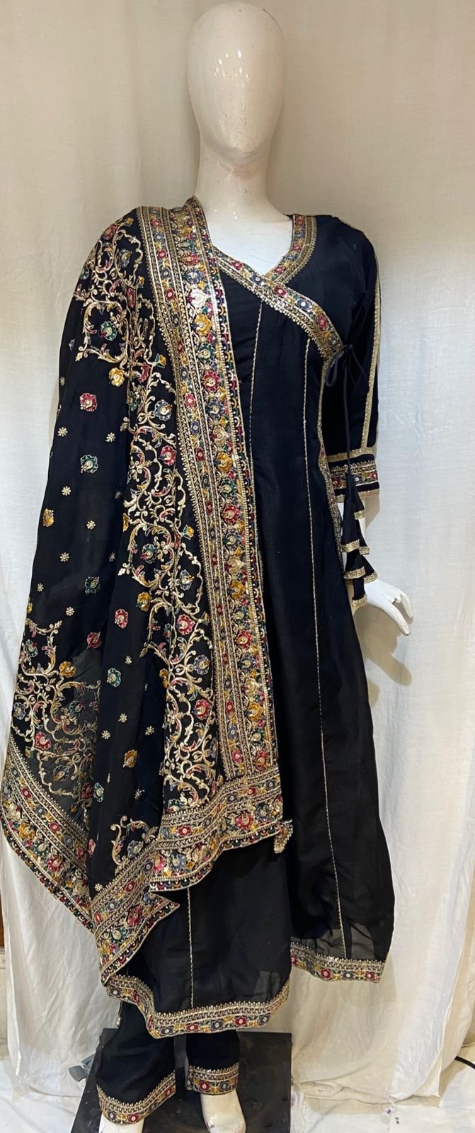 Chinon Fabric Thread Work Black Colour Readymade Anarkali Frock