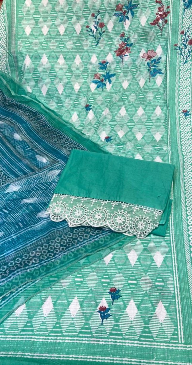 Cotton Fabric C Green Printed Casual Wear Suit