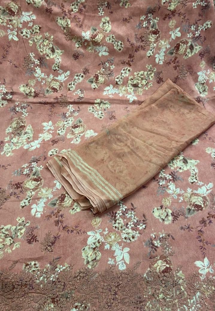 Cotton Fabric Printed Peach Colour Casual Wear Suit