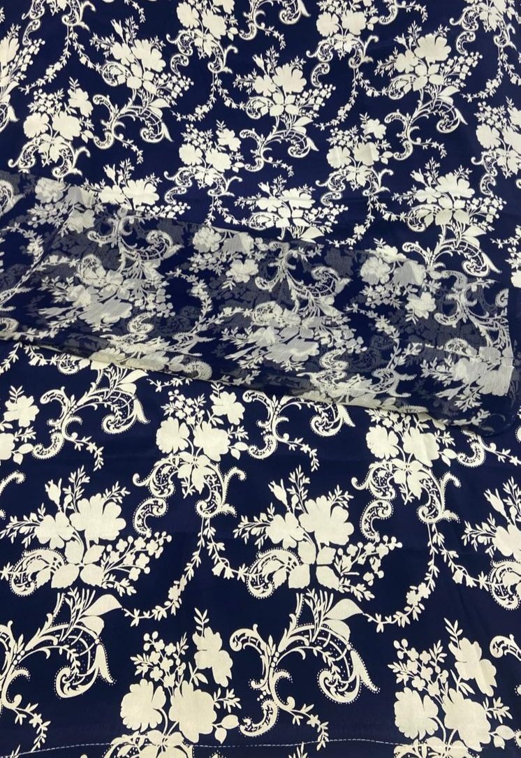 Crape Fabric Navy Blue Casual Wear Suit