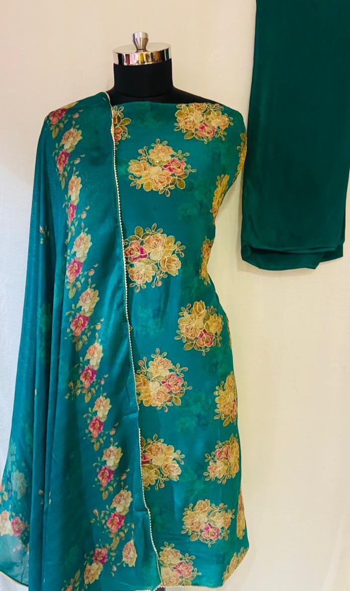 Crape Fabric peacock colour Casual wear suit
