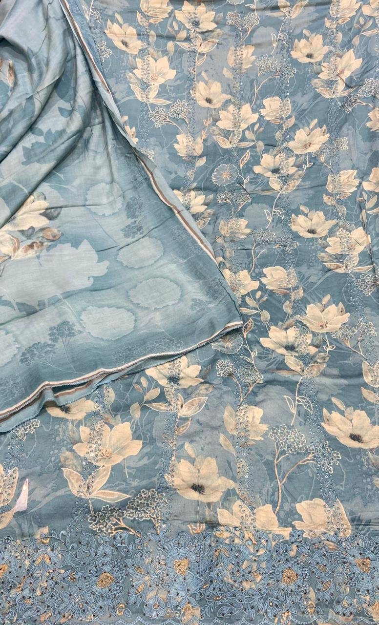 Crape Fabric Printed Sky Colour Casual Wear Suit