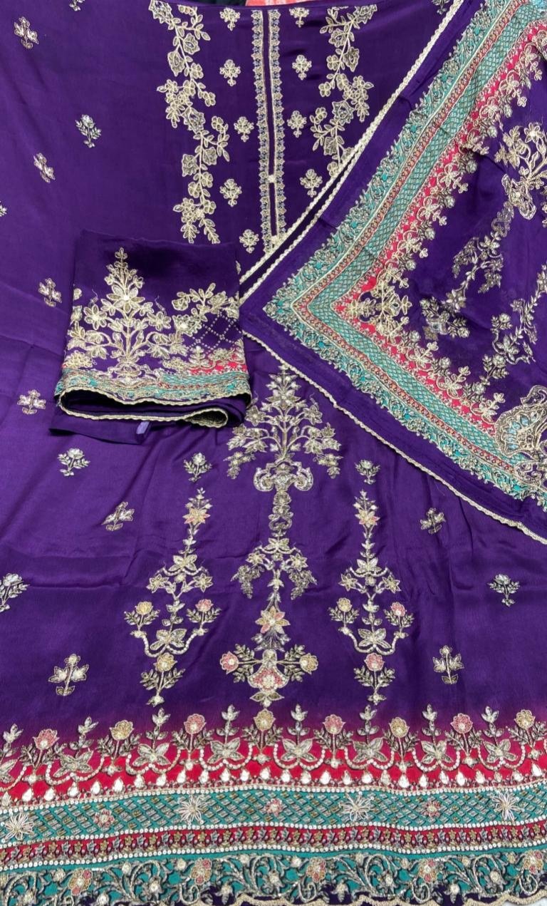 CRAPE FABRIC PURPLE COLOUR DEZINER SUIT