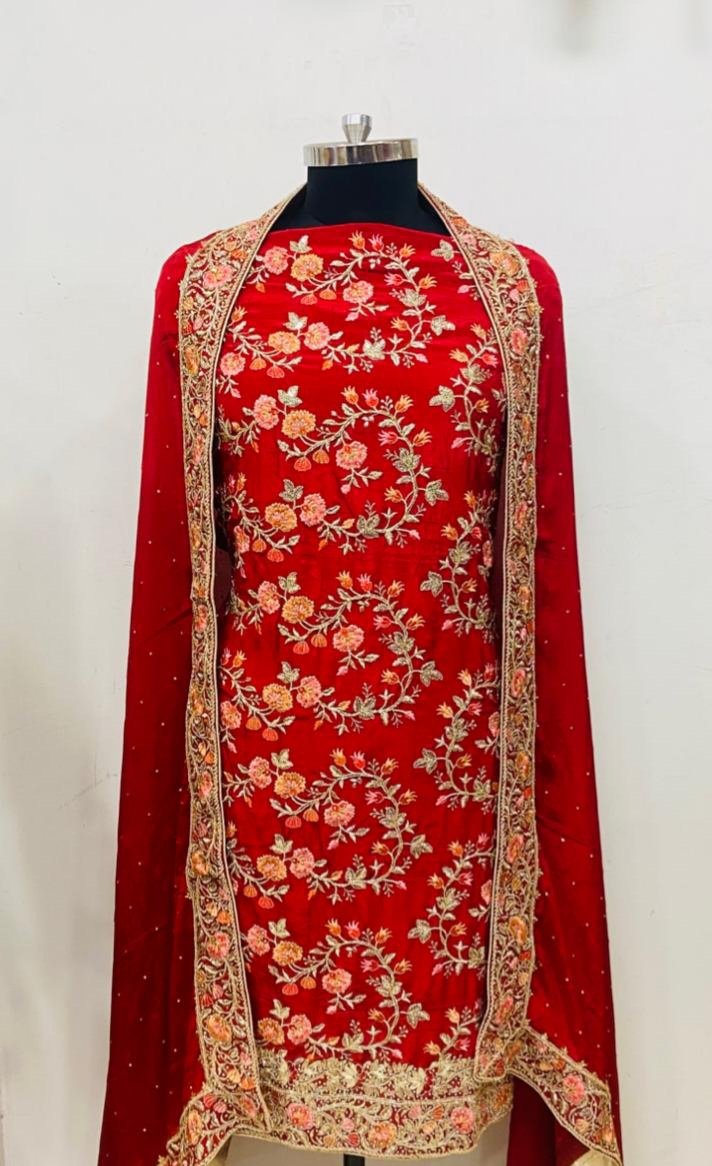 Crape Fabric Red Colour party wear suit