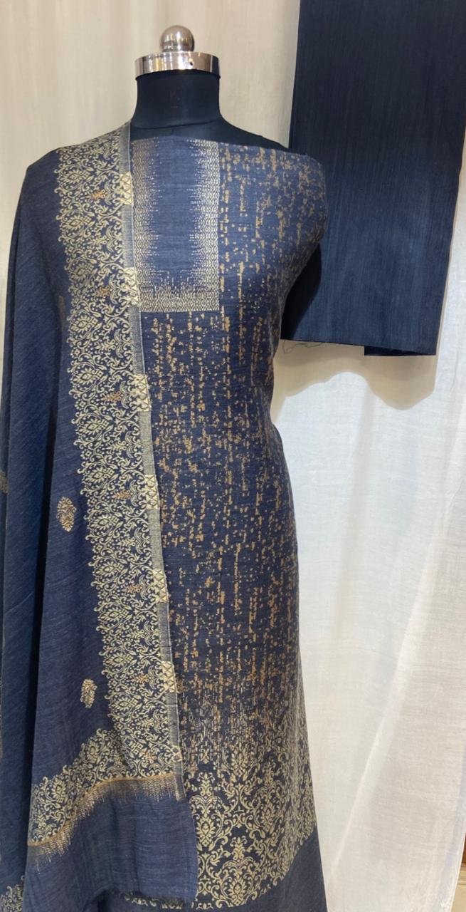 Dark Grey Unstitched Soft Pashmina With Elegant Suit