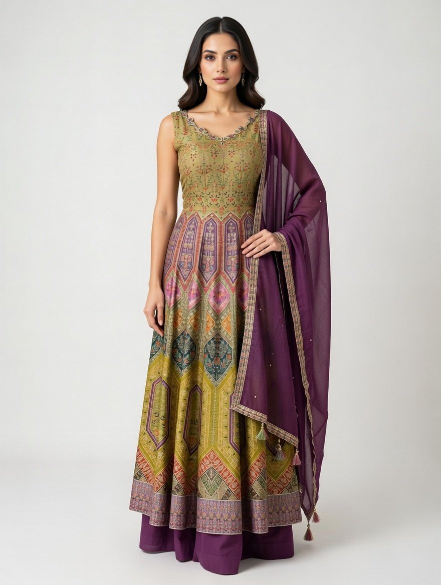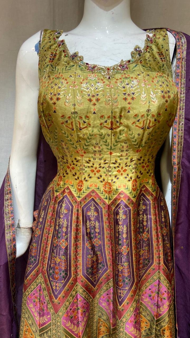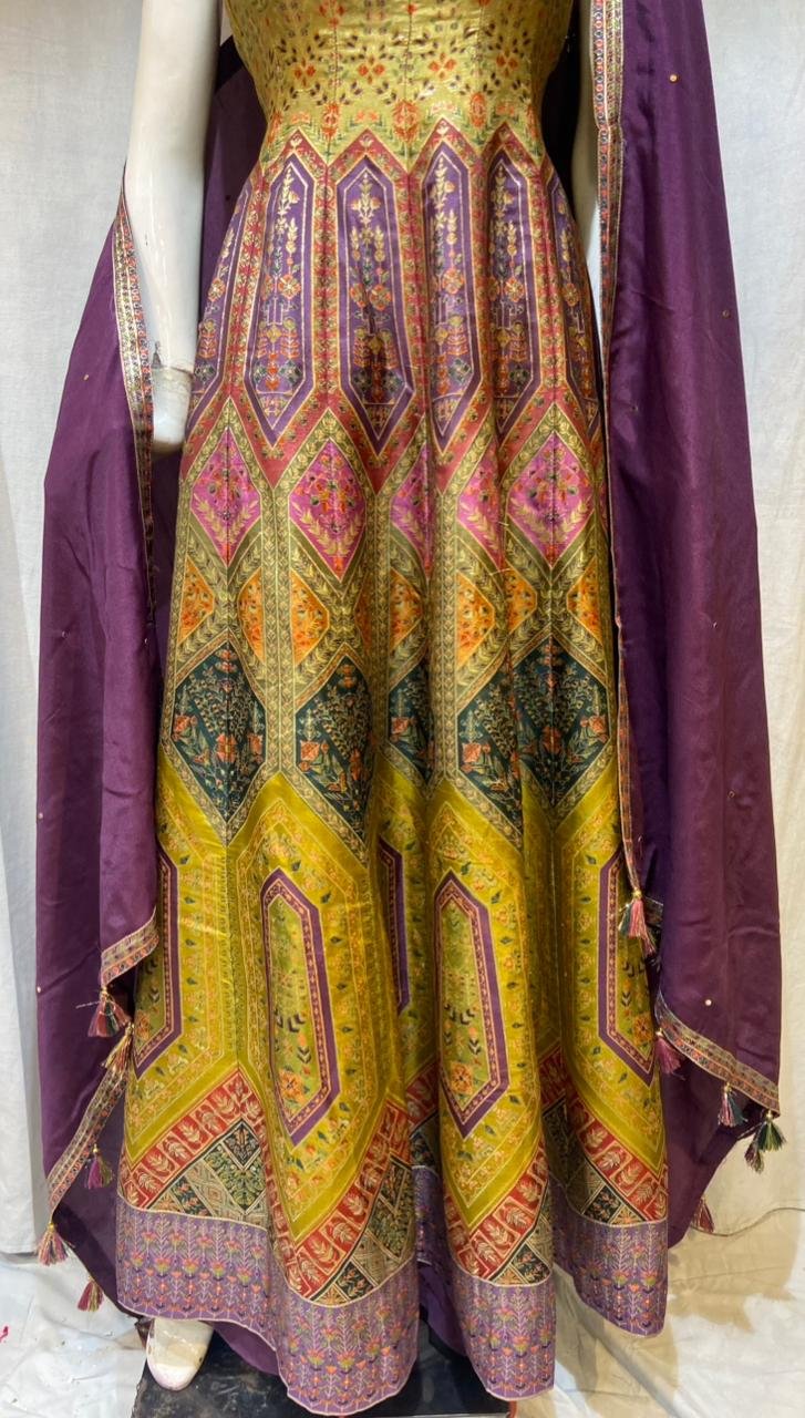 Designer Nyra cut Banarsi Silk Printed Multicolour Suit