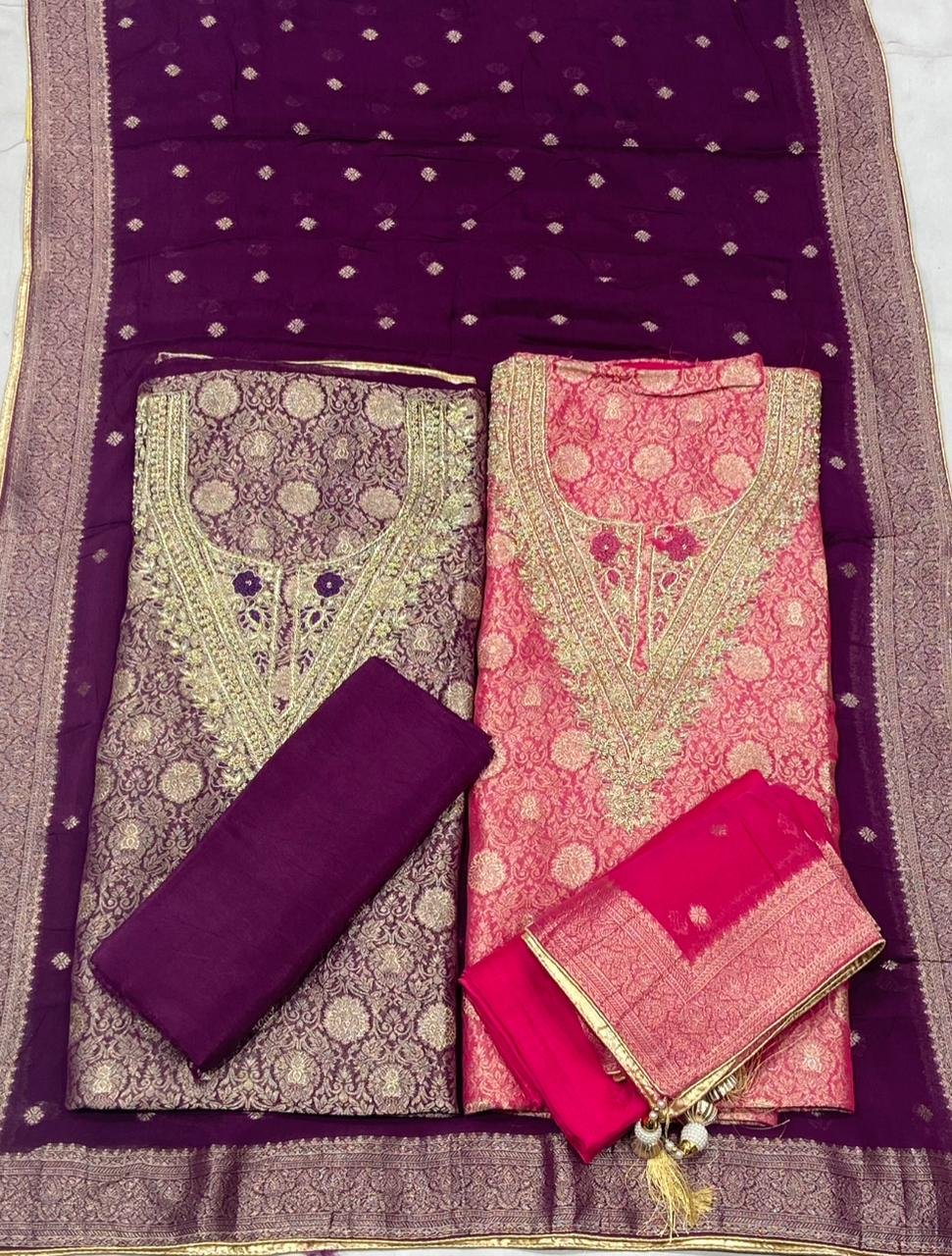 Fabric Banarasi Lovely Rust & Purple Colour Party Wear Suit