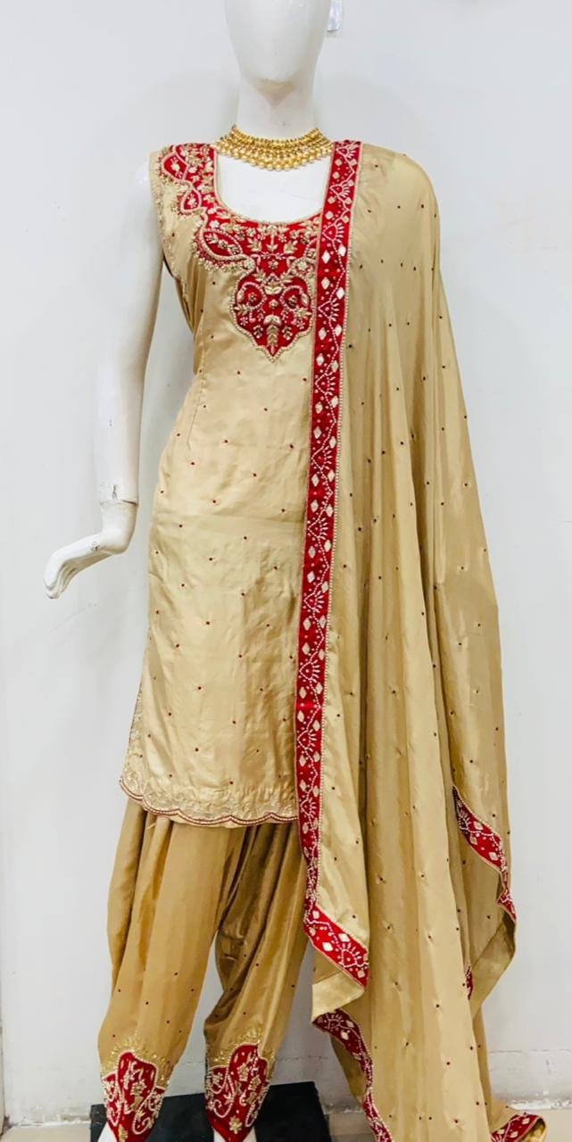 Fabric Pure Silk Golden and Red Contrast Customize Salwar Suit