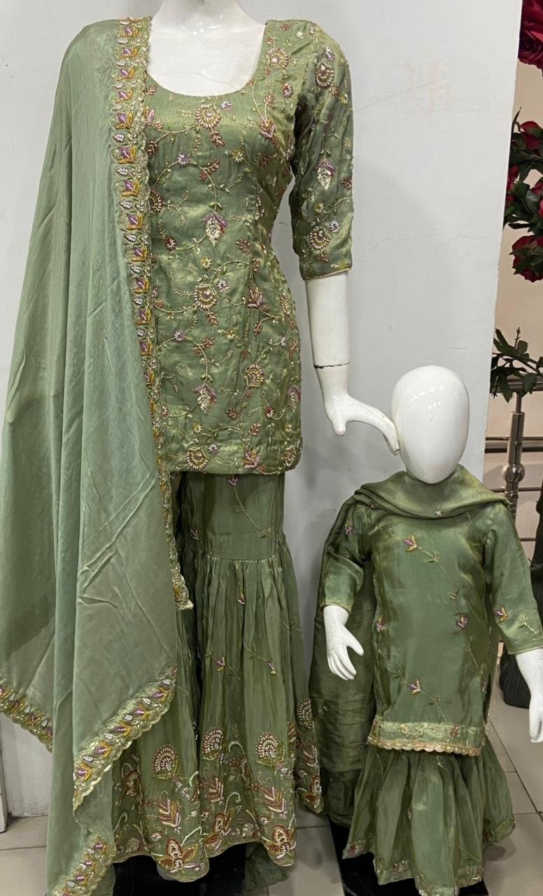Fabric Shimmer Sage Green Mother and Daugther Matching Outfit