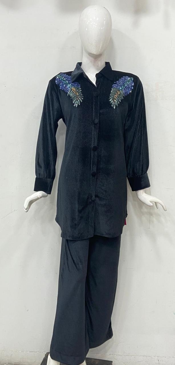 Fabric Velvet Black Colour Designer readymade coord set