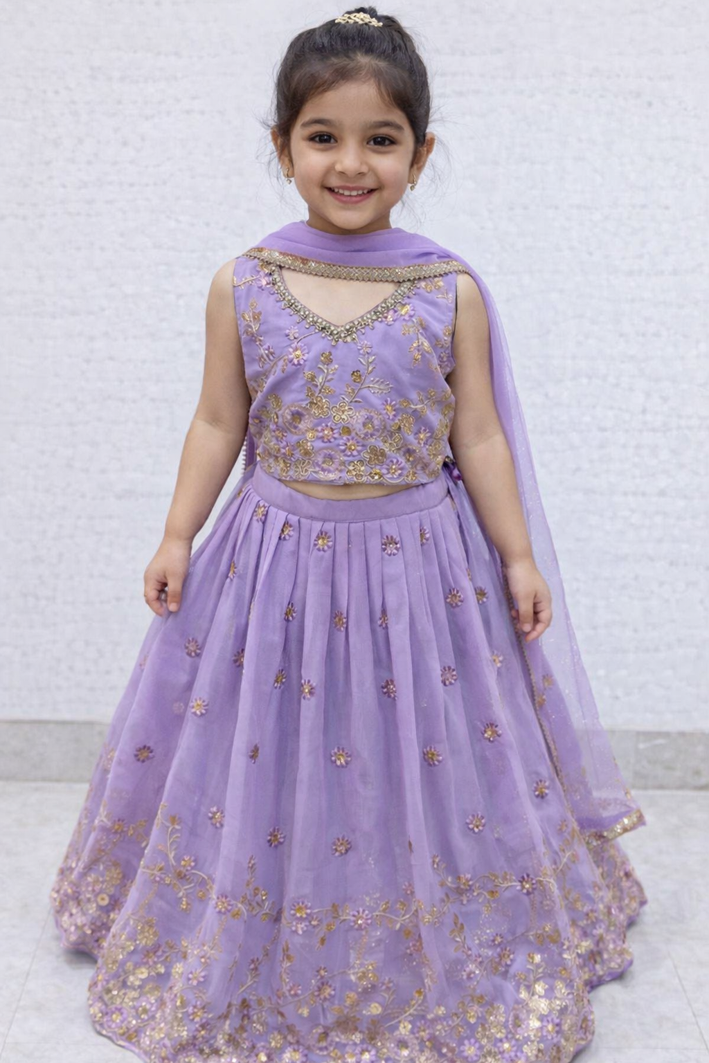 Georgette Fabric Lavender Colour Thread and Sippy Work Readymade Lehenga Choli