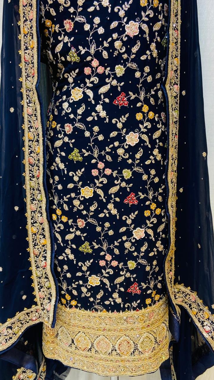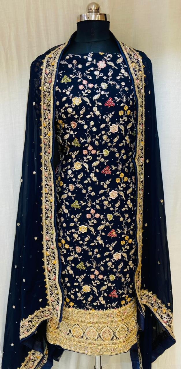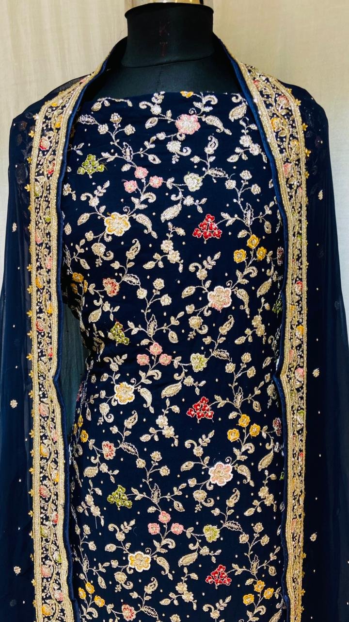 Georgette Fabric Navy Blue Lovely Hand Work Party Wear Suit