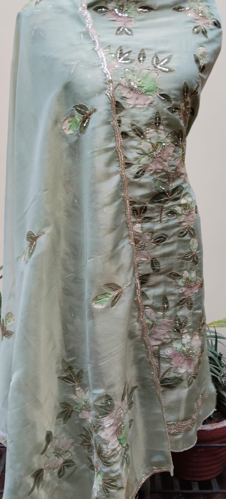 Girlish Look Organza Fabric Pista Grey Colour Party Wear Suit