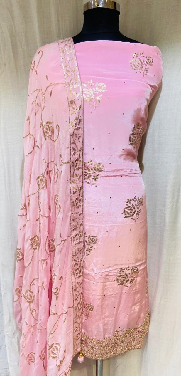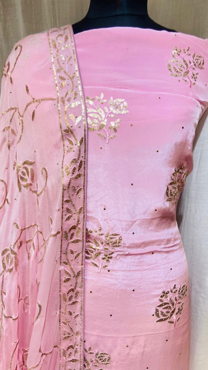 Girlish Look Soft Crape Fabric Dabka Work Pink Colour Suit