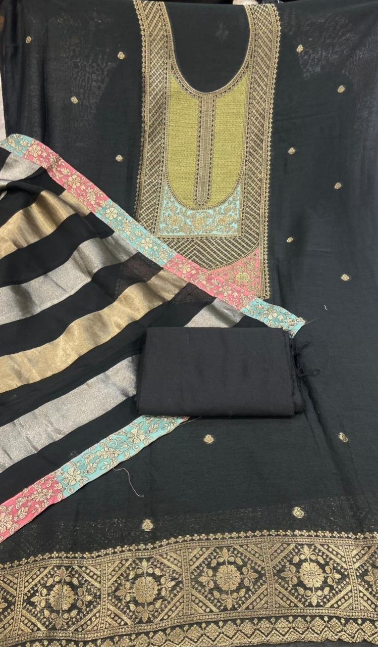 Khadi Fabric Black Colour Designer Suit