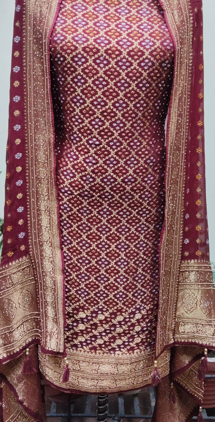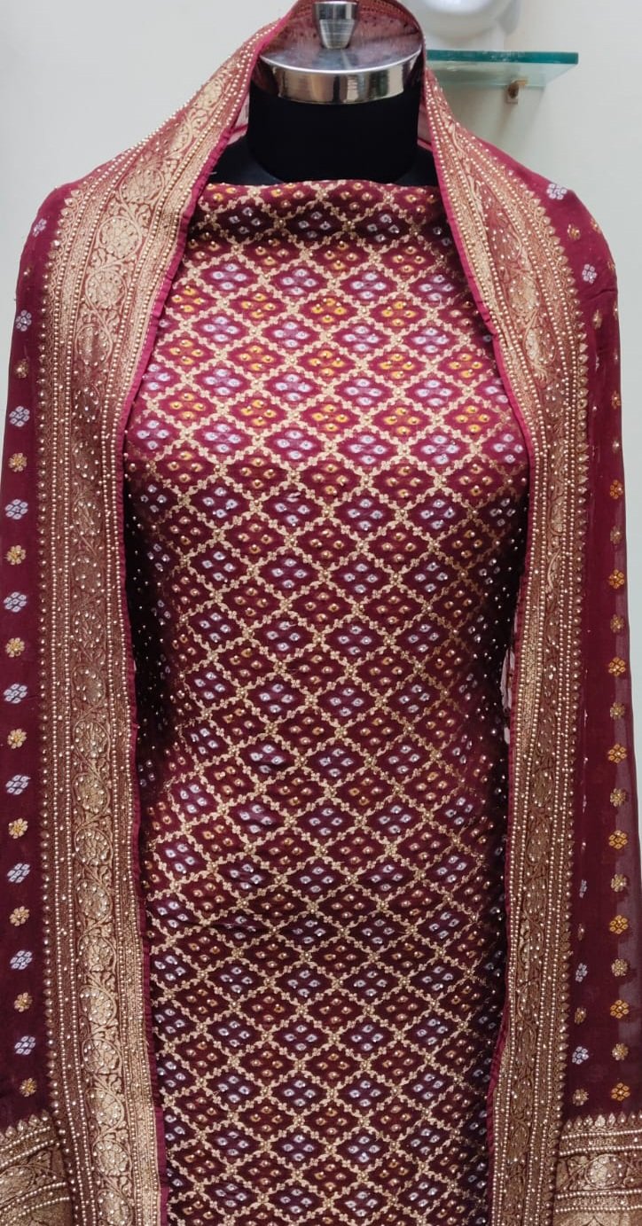 Mehroon Colour Georgette Fabric Party Wear Suit