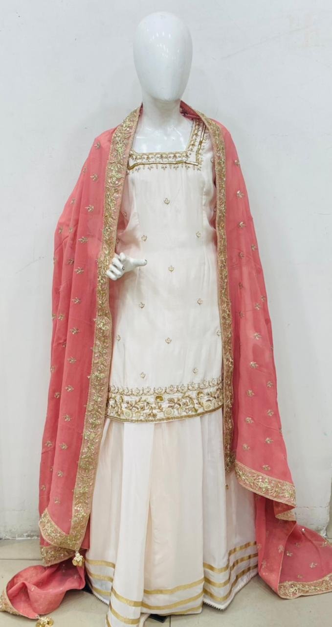 Offwhite colour silk fabric lengha with short kurti lovely customized dress