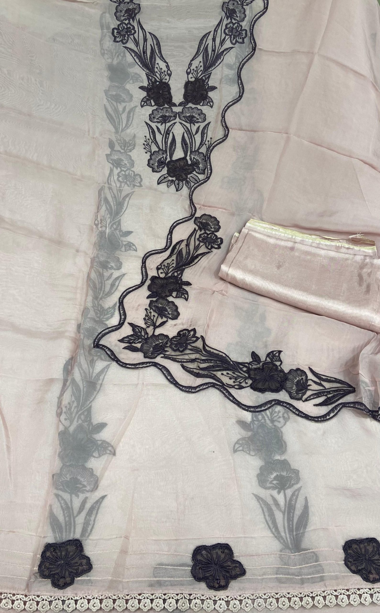 Organza Fabric Peach Pink Thread work Party Wear Suit
