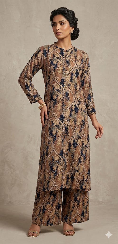 Readymade kurti with plazo,Brown colour,Cotton fabric