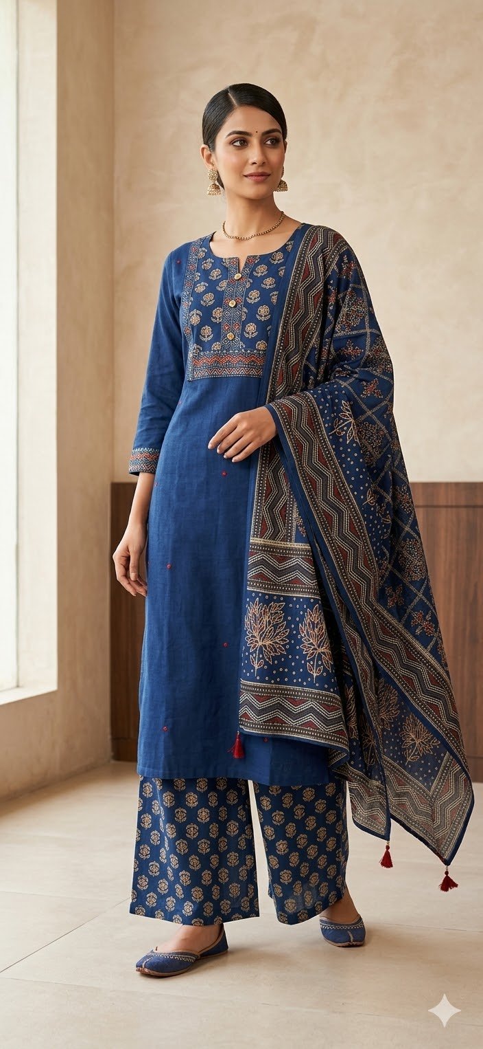 Readymade Plazo suit Cotton Fabric,Blue colour