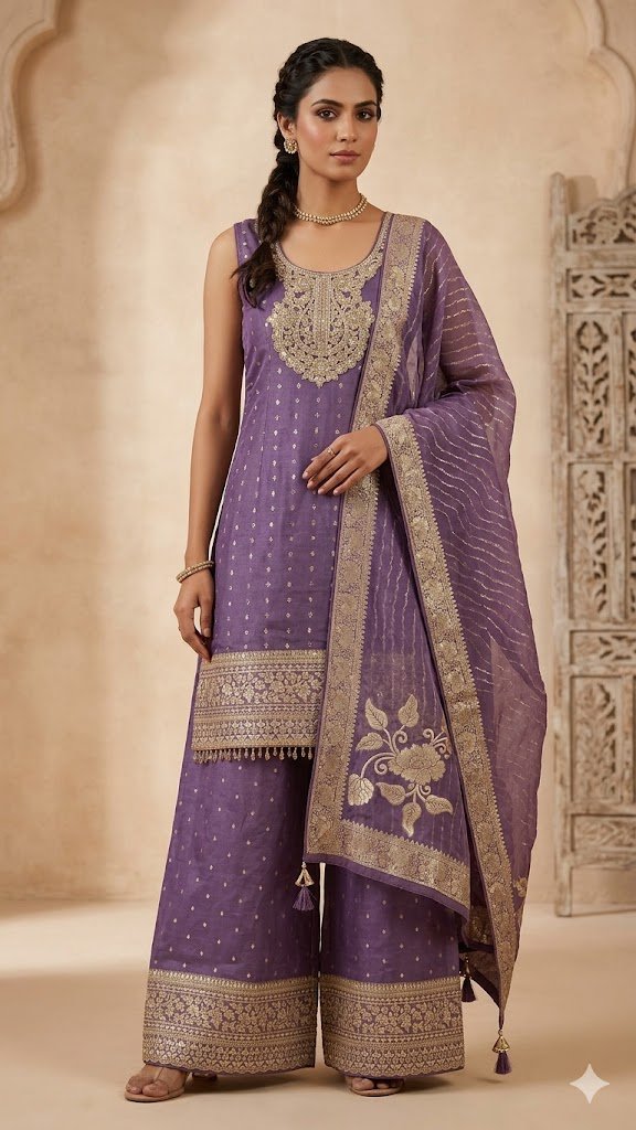 Readymade plazo with kurti ,Lavender Colour, Shimmer Fabric