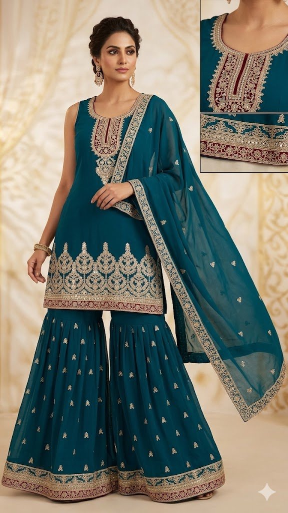 Readymade Sharara suit,Peacock Colour,Georgette Fabric