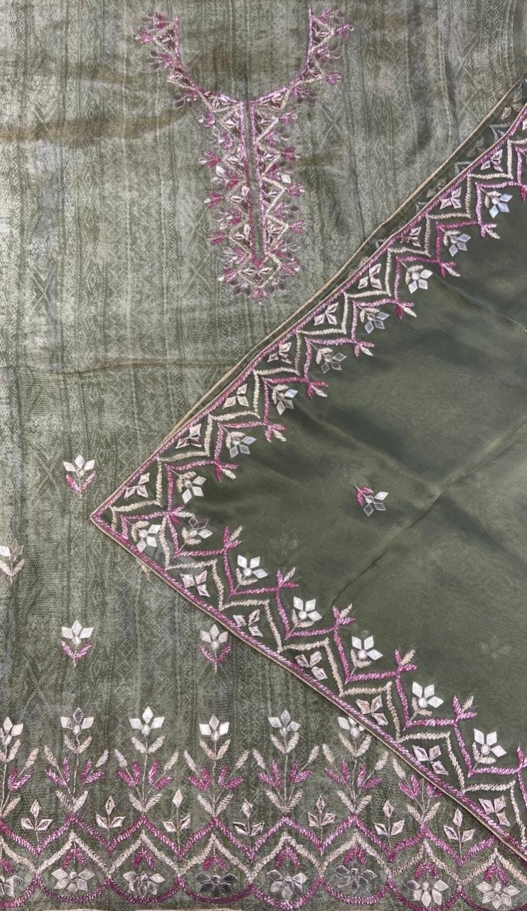 Shimmar Fabric Mehandi Colour Lovely Gotta patti Suit
