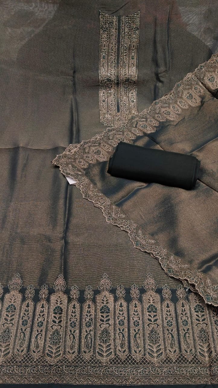 Shimmer Fabric Bottle Green Thread Work Designer Suit
