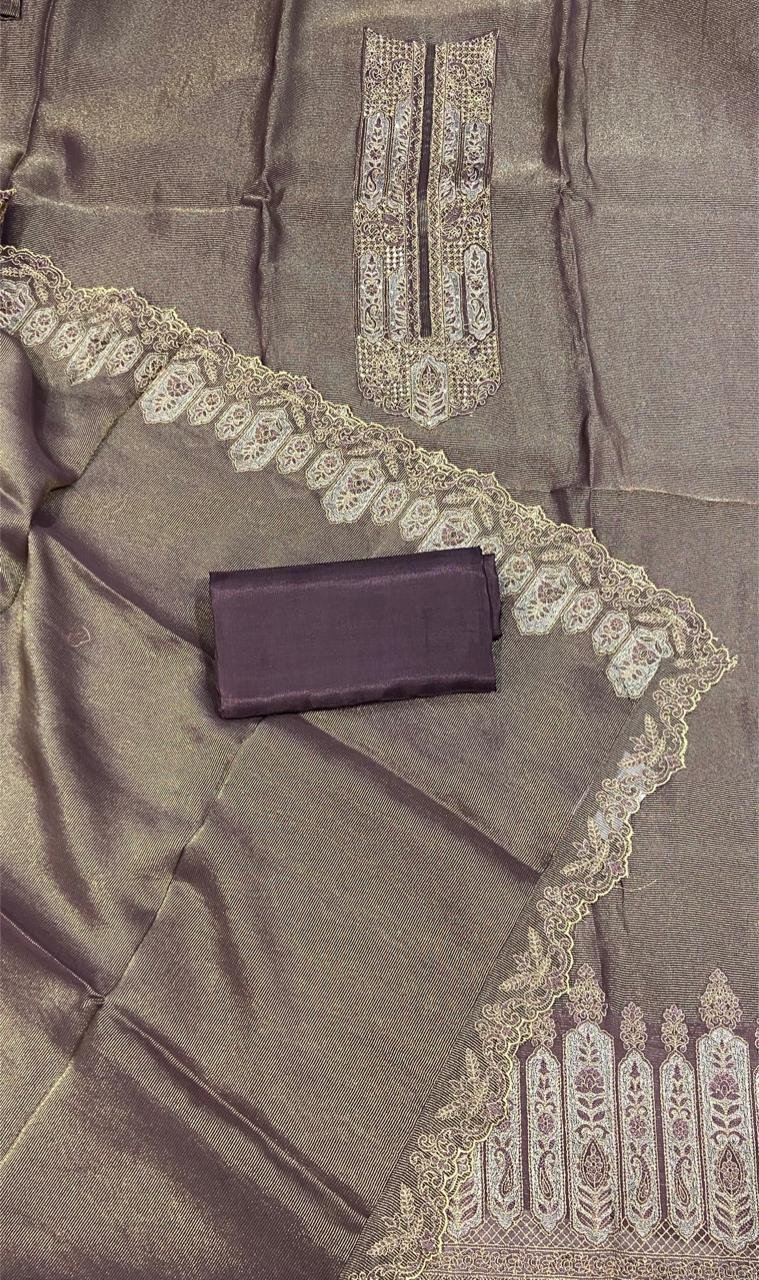 Shimmer Fabric Copper Colour Threadwork Party Wear Suit