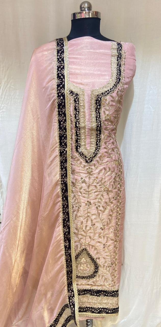 Shimmer Fabric Gotta Paatti Work Onion Colour Party Wear suit