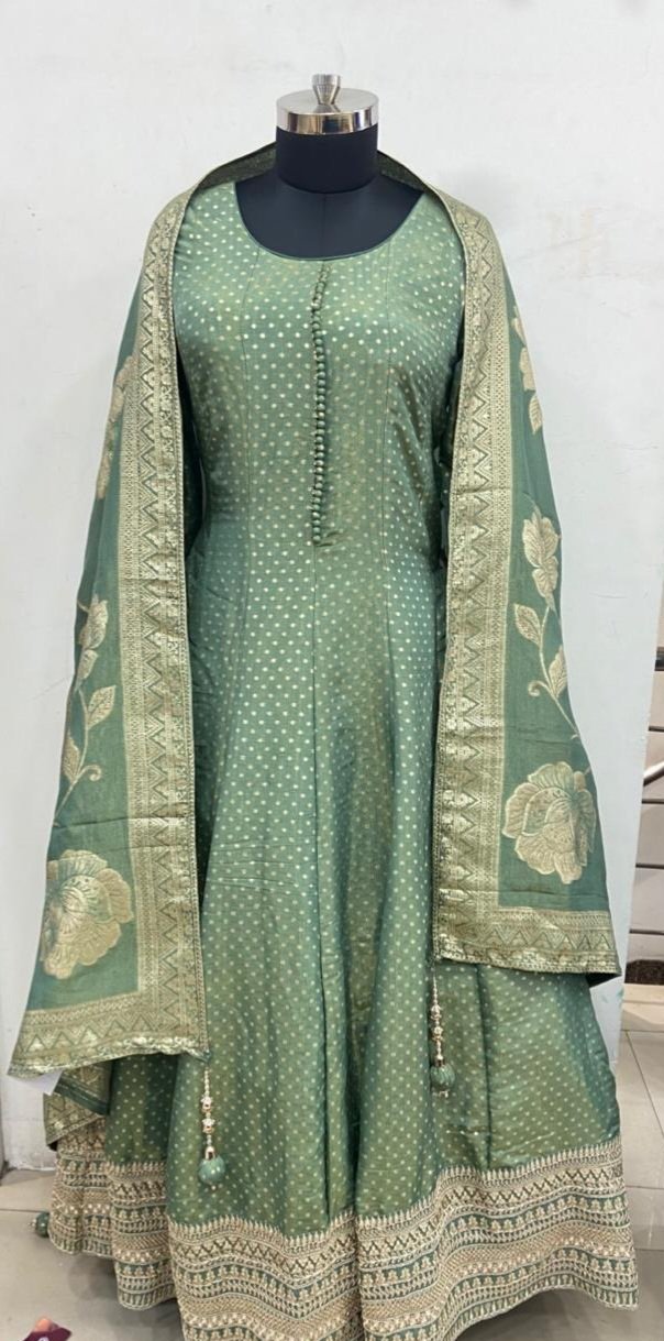 Shimmer Fabric Green Colour party wear Long Dress