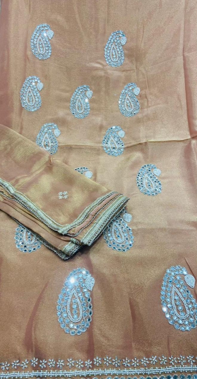 Shimmer Fabric Peach Colour Mirror Work Party Wear Suit