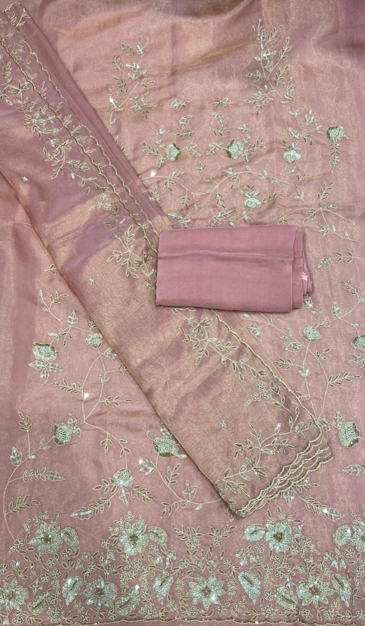 Shimmer Fabric Peach Pink Handwork Lovely Suit
