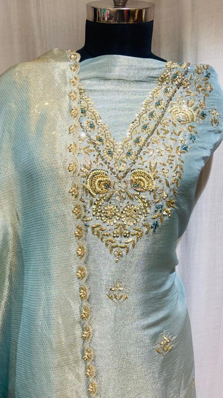 Shimmer Fabric Sky Colour Boutique Piece Party wear Suit